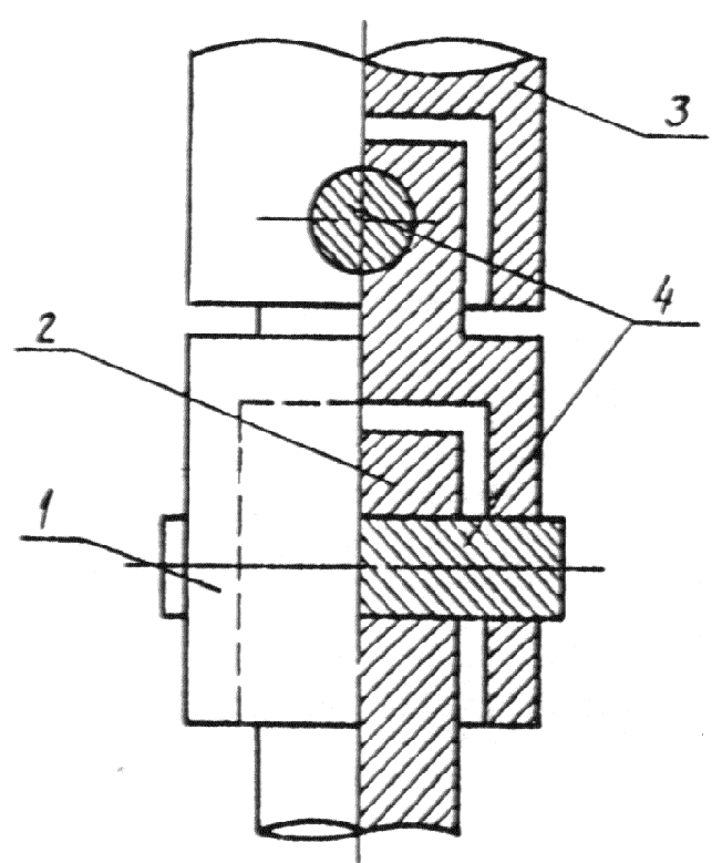 4. Для обеспечения соосности передачи усилия между захватами их следует соединять с опорными устройствами испытательной машины через шарнир Гука, схема которого приведена на черт. 18. Концевой элемент 2