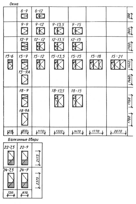 Êîíñòðóêöèÿ, ôîðìà, îñíîâíûå ðàçìåðû è ìàðêè îêîí è áàëêîííûõ äâåðåé æèëûõ çäàíèé
