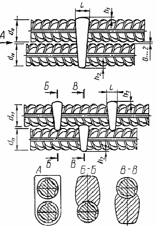 Положение стержней при сварке
