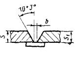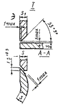 При разнице толщины свариваемых деталей свыше значений, указанных в табл. 28, на детали, имеющей большую толщину s1, должен быть сделан скос до толщины тонкой детали s, как указано на черт. 2 и 3. При этом конструктивные элементы подготовленных кромок и размеры сварного шва следует выбирать по меньшей толщине.