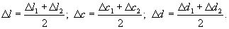 Средние величины перемещений в продольном (∆l) и в поперечных (∆c и ∆d) направлениях вычисляют с точностью до 0,5·10-6 м по формулам: