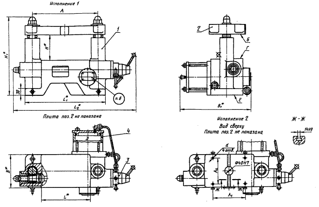 1. Кондукторы исполнения 1 комплектуются плитами типа А, исполнения 1; исполнения 2 - плитами типа Б, исполнения 1. Комплектование другими плитами оговаривается при заказе.