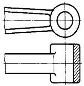 Если уклон или конусность отчетливо не выявляются, например главный вид на рисунке 56 или вид сверху на рисунке 57, то на изображениях проводят только одну линию, соответствующую меньшему размеру элемента с уклоном или меньшему основанию конуса.