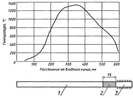Рисунок 1 - Профиль распределения температуры по длине трубки для сжигания