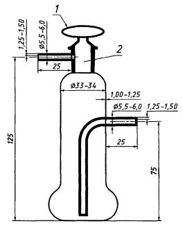 Примечание - Свежезаряженные сосуды Мидвэйла, уже использованные в очистительной системе, могут быть впоследствии использованы в поглотительной системе. В качестве сосудов очистительной системы применяют также склянки типов СПЖ, CUT и СН-1 или 2 по ГОСТ 25336.