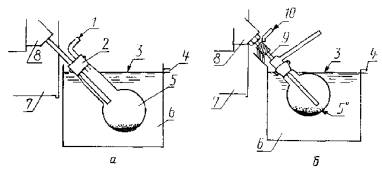 1.5.5. Баня (сосуд) для охлаждения колбы-приемника такого размера, чтобы расстояние между стенками колбы и сосуда было не менее 20 мм. Поток воды через баню устанавливают таким образом, чтобы поддерживать температуру в бане в пределах 10 - 15 °С.