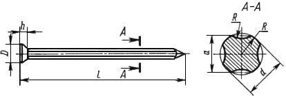 | Условный диаметр стержня d | Длина гвоздя l | Размер a | Наименьший диаметр головки D |