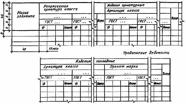 Примечание. Арматурные и закладные изделия изображают очень толстой сплошной линией