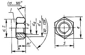 1) Размеры гаек, заключенные в скобки, применять не рекомендуется. 2) P - шаг резьбы. 3) m - минимальная длина резьбы, равная высоте шестигранника. 4) m' - минимальная высота под ключ. |
