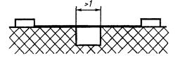 Если соответствующий путь включает в себя паз с параллельными или сходящимися стенками любой глубины шириной менее 1 мм, пути утечки и воздушные зазоры измеряют поперек паза. |