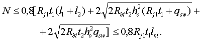 Усилие в хомутах на единицу длины перемычки qsw = 255 × 85/150 = 144 Н/мм. Проверка выполнения неравенства (3):