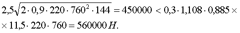 Для проверки выполнения неравенства (6) вычисляем jw1 = l + 5 × 20 × 104/(24 × 103)85/(220 × 150) = 1,108; тогда jb1 = 1 — 0,01 × 11,5 = 0,885;