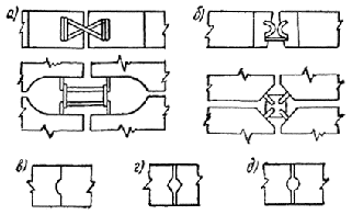 Бетонные полосы разделяют поперечными швами, которые должны быть продолжением швов в покрытии. При устройстве бетонных покрытий со шпунтами на боковых гранях и при отсутствии штырей в поперечных швах бетонных покрытий в швах краевых полос ставят штыри — по одному-два стержня длиной 50 см и диаметром 16 — 18 мм по типу штырей в швах сжатия и расширения в покрытии (с обмазкой и с колпачками в швах расширения).