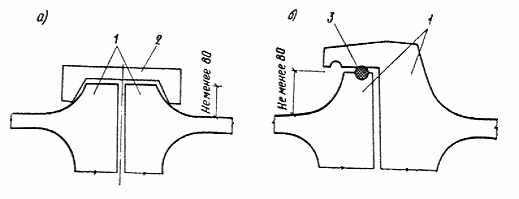 а - с фартуком из оцинкованной кровельной стали; б - "замком";
